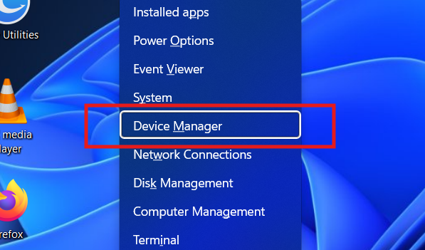 - Press Windows + X → Device Manager